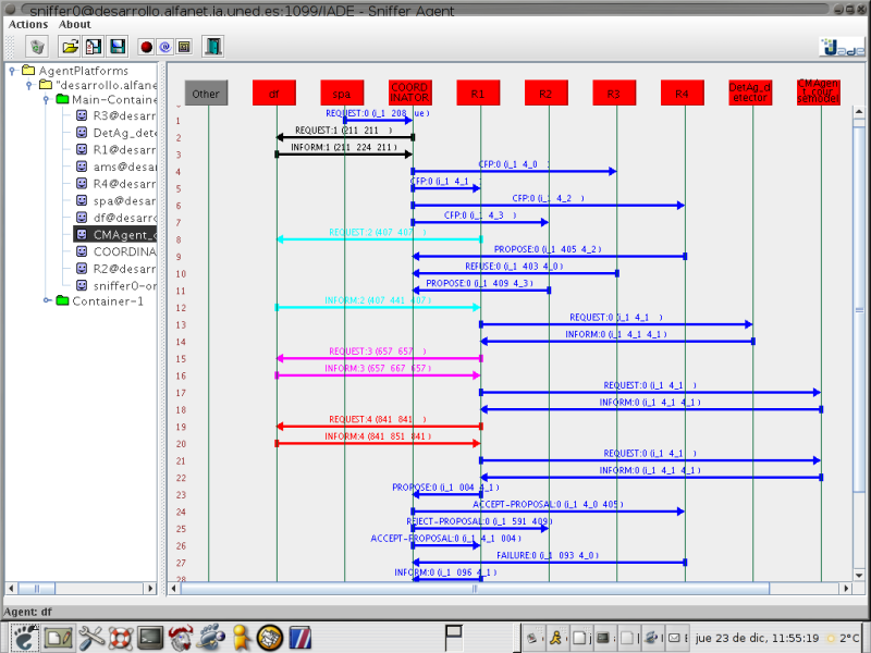 Hay bastante software denominado como software de agentes para gnu/linux, sin embargo, no siempre se entiende la filosofía de agentes que subyace. La herramienta para desarrollar agentes más extendida y utilizada es JADE gracias a sus buenas herramientas gráficas, documentación, soporte, licencia LGPL, ... por desgracia para quienes no queremos caer en la "Trampa de Java" requiere JDK 1.4 ó posteriores.