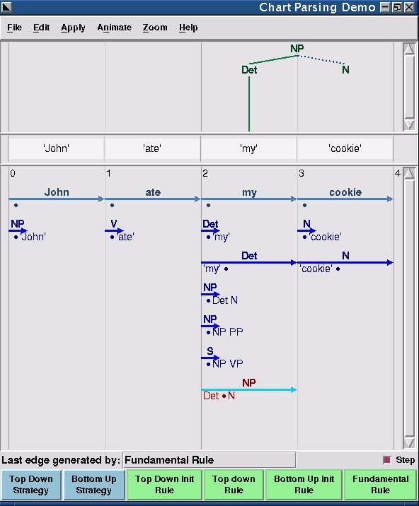 Análisis sintáctico: Se transforman las secuencias lineales de palabras en ciertas estructuras que muestran la forma en que las palabras se relacionan entre sí. Se pueden rechazar algunas secuencias de palabras si infringen las reglas del lenguaje sobre la forma en que las palabras pueden combinarse. Ej: "niña la come mucho" se rechazaría.